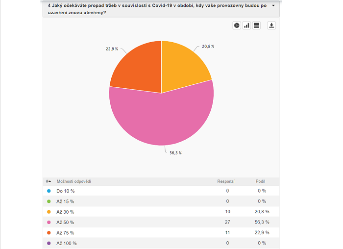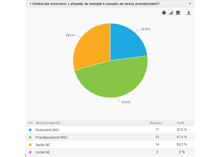 Nájmy představují pro firmy 15 až 25 % z celkových tržeb, pohybují se v řádech jednotek až desítek milionů korun měsíčně. Každý další týden, kdy jsou prodejny uzavřeny, tak firmy přicházejí o významné příjmy, které nejsou schopny nahradit ani prostřednictvím online prodejů. Více než 56 % firem očekává propad tržeb v období, kdy prodejny budou znovu otevřeny, až o 50 %. Přes 62 % firem pak neplánuje za duben uhradit nájemné a další poplatky. Většina dotazovaných firem se domnívá, že negativní dopady pandemie Covid-19 bude řešit ještě dalších 12 měsíců.