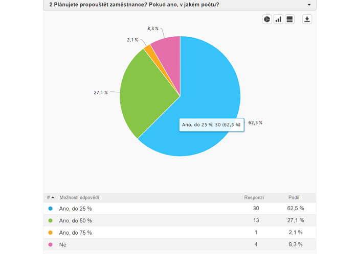 Navíc až 9 z 10 firem v souvislosti s touto krizí plánuje propouštět zaměstnance. U 30 % procent firem půjde o více než čtvrtinu zaměstnanců. Okolo 70 % dotazovaných firem navíc bude nuceno přistoupit ke snižování mezd. Optimistické firmy nejsou ani v souvislosti se znovuotevřením svých prodejen, datum 8. června se jim zdá velmi pozdní a rádi by tento týden jednali o dřívějším otevření.