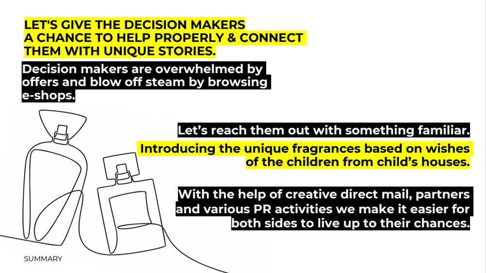 - Vítězství v PR kategorii patří soutěžícím z agentur Saatchi & Saatchi a MSL Czech Republic ve složení Lucia Krajčiová a Ondřej Šveda.