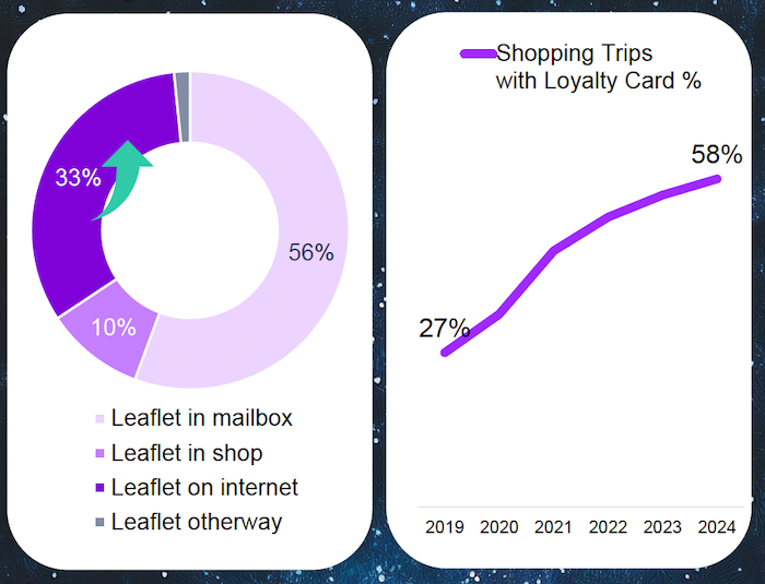 Spolu s technologiemi se posouvá i pojetí akčních letáků, které si lidé prohlížejí častěji v e-mailu (56 %) nebo na internetu (33 %), v papírové podobě na prodejně tak činí pouze 10 %. Rozvíjí se rovněž věrnostní programy, které v roce 2019 využívalo při svých nákupech podle YouGov jen 27 % nakupujících, nyní je to 58 %.