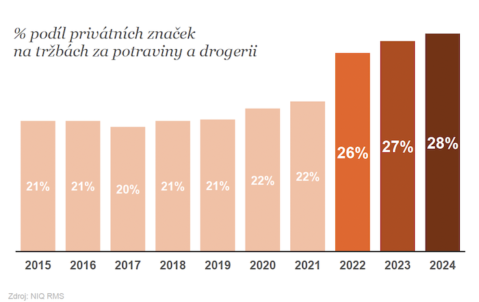 Maloobchodníci investují do svého sortimentu, zejména do vývoje svých privátních značek, jejichž podíl na celkových prodejů činí dnes podle údajů agentury NIQ již 28 %, podle YouGov dokonce 30 %.