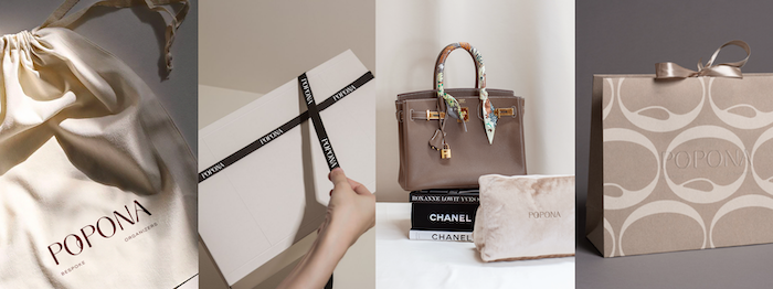 Pro zákaznice, které se rozhodnou investovat do luxusního zboží, jako jsou kabelky Hermès, Chanel, Dior, nebo Goyard, tak Popona nabízí organizéry, výplňové polštářky, ochranné fólie na kovové části kabelek a další doplňky úzce spjaté s luxusním zbožím.
